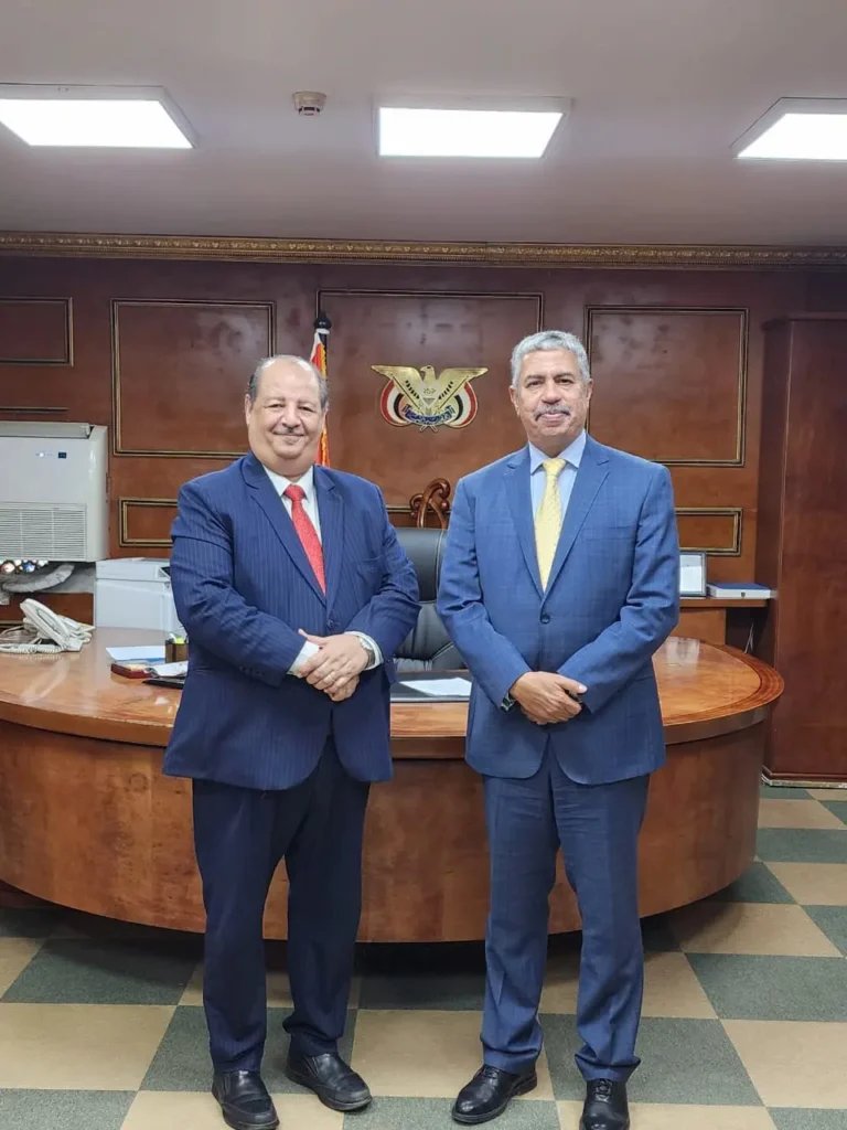 His Excellency Ambassador Khaled Bahah, Ambassador of the Republic of Yemen to the Arab Republic of Egypt—who previously served as both Vice President and Prime Minister—received Prof. Dr. Samir Abdelghani, CEO and Founder of MondeCare for Tourism Investment, at the embassy headquarters in Cairo.